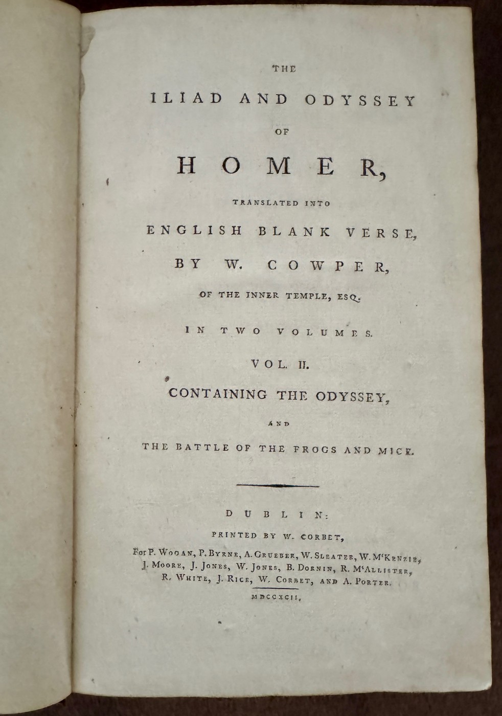 For completeness sake, the oldest book I own (the Odyssey from 1792)